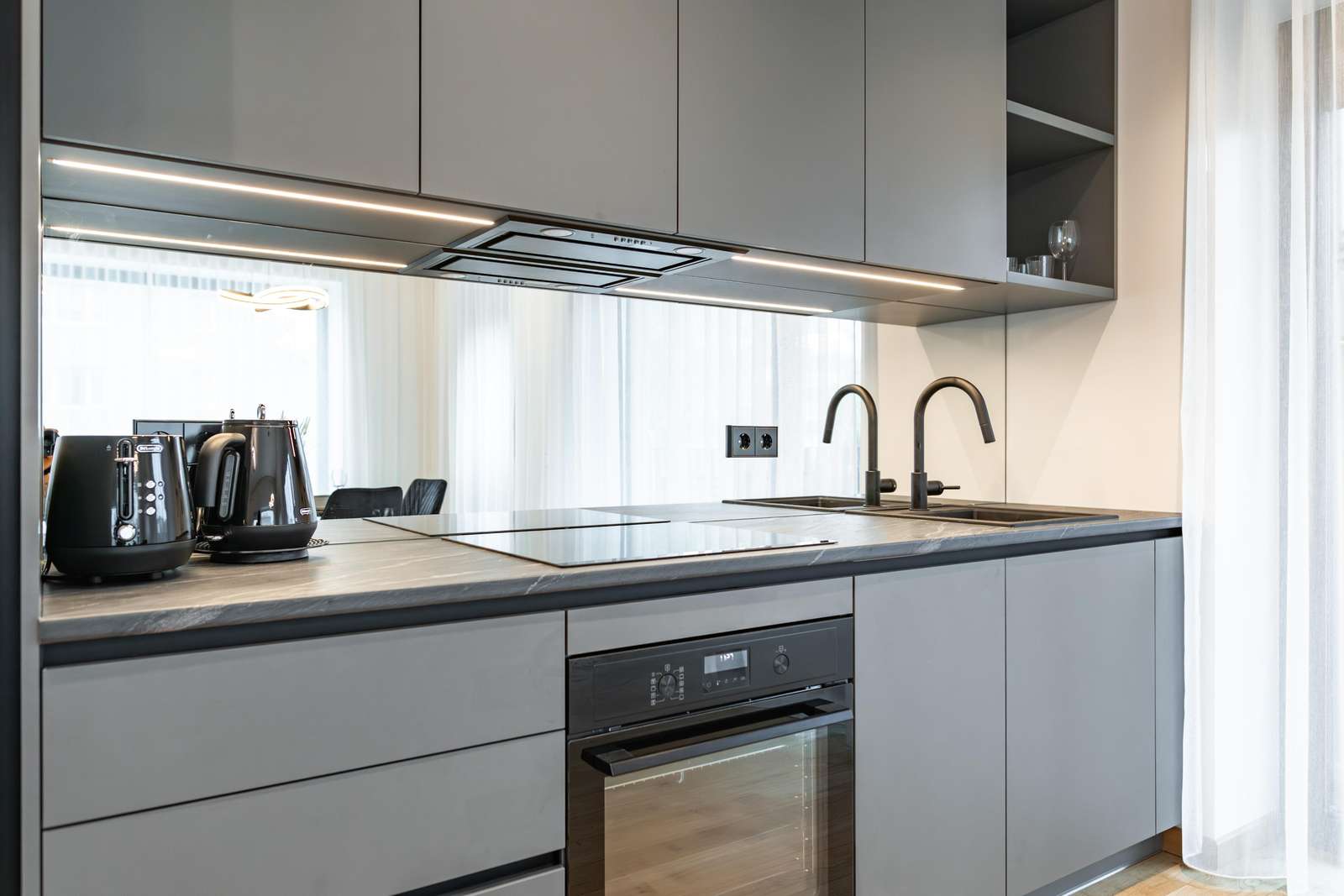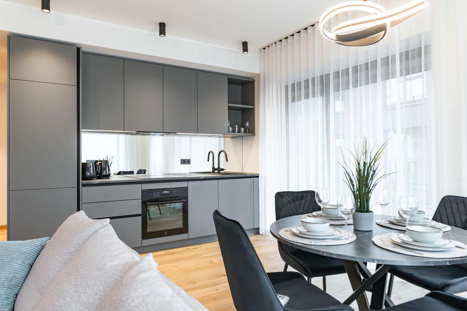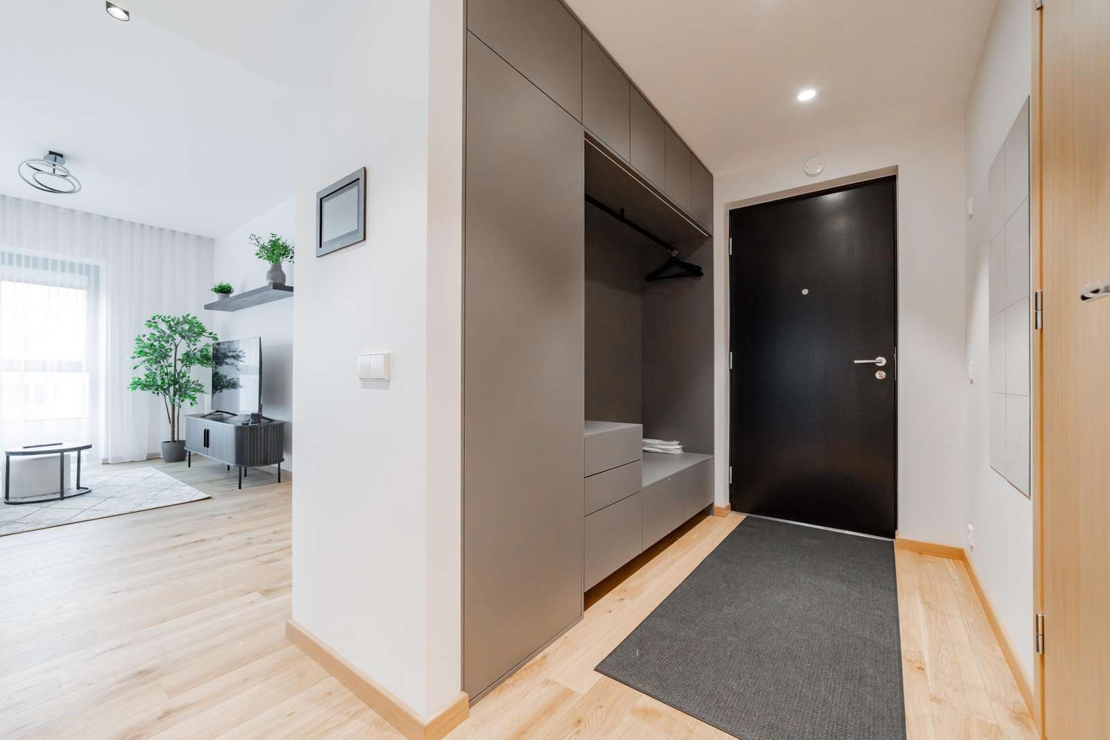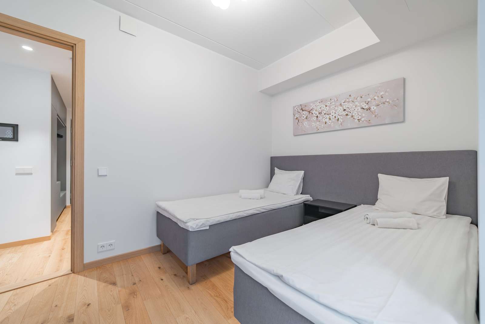 Stay in a spacious and modern 2-bedroom apartment with balcony and view to the sea! Apartment has a bright living room, furnished balcony, two bedrooms, fully equipped kitchen and a shower. Perfect for couples, small families and business travellers. Free 100MB Wi-Fi, stylish interior and underground parking makes your stay comfortable and convenient.