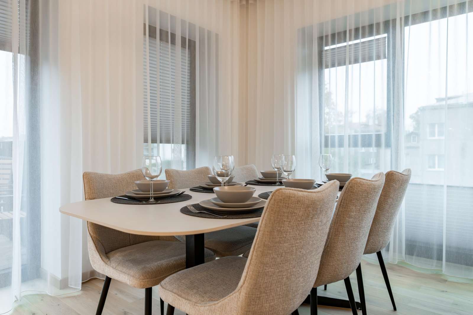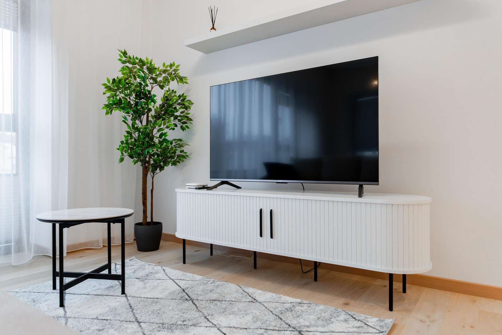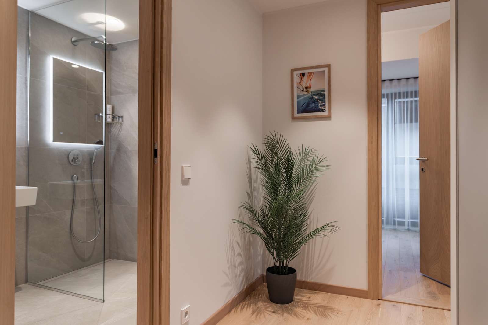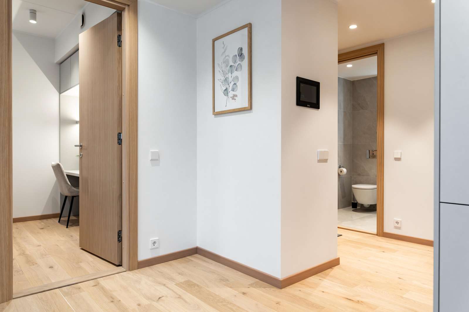 Stay in a spacious and modern 2-bedroom apartment with balcony and view to the sea! Apartment has a bright living room, furnished balcony, two bedrooms, fully equipped kitchen and a shower. Perfect for couples, small families and business travellers. Free 100MB Wi-Fi, stylish interior and underground parking makes your stay comfortable and convenient.