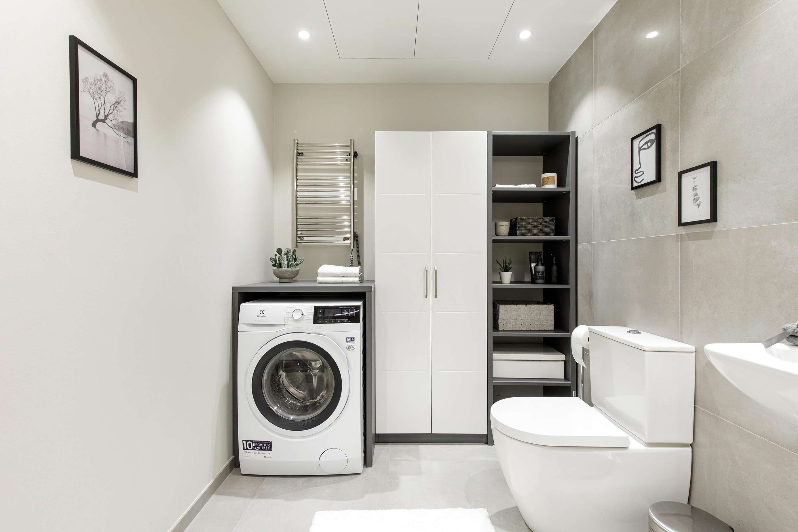 ⬩ Bathroom: Walk-in shower, toilet, towels, toilet paper, body soap, hair dryer, hot water, in-unit washer.