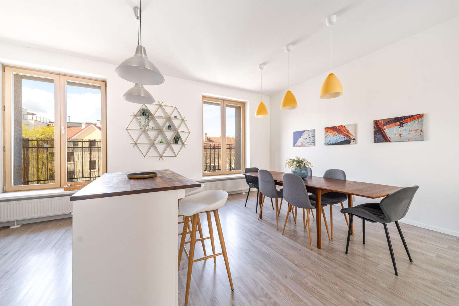 Guests have full access to the entire apartment, including the private balcony. The apartment is on the fifth floor, and please note there is no elevator in the building. Standard check-in is from 16:00 and check-out by 12:00. Early check-in or late check-out may be arranged for a small extra fee, subject to availability.