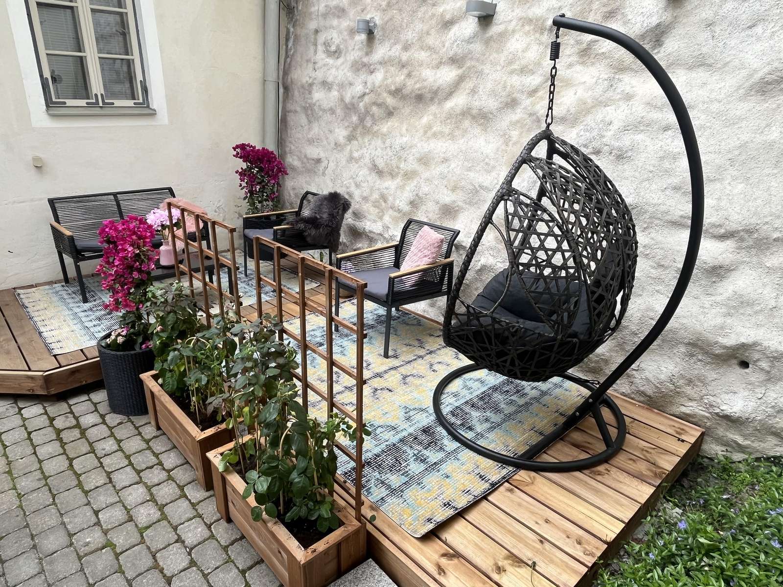 ⬩Extras: Private in-unit sauna for a relaxing end to your day. Furnished outdoor terrace with lounge chairs, swing seat, and flowers - perfect for morning coffee or evening drinks.