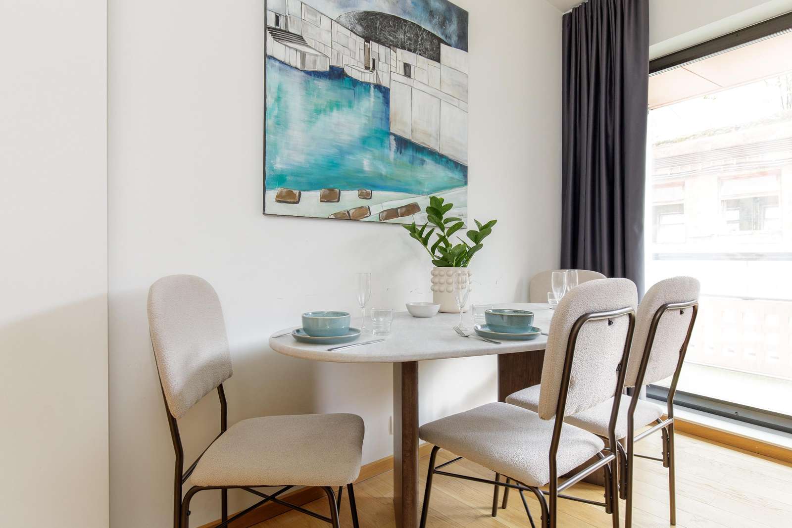 ⬩ Balcony: Private outdoor space with seating, perfect for morning coffee or evening relaxation.