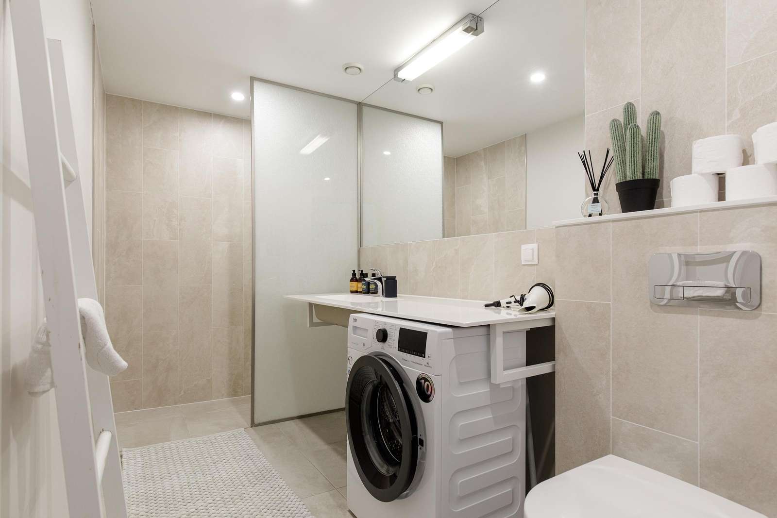 ⬩ Bathroom: Private bathroom with shower, shampoo, shower gel, body soap, hair dryer, cleaning products, hot water, and fresh towels.
