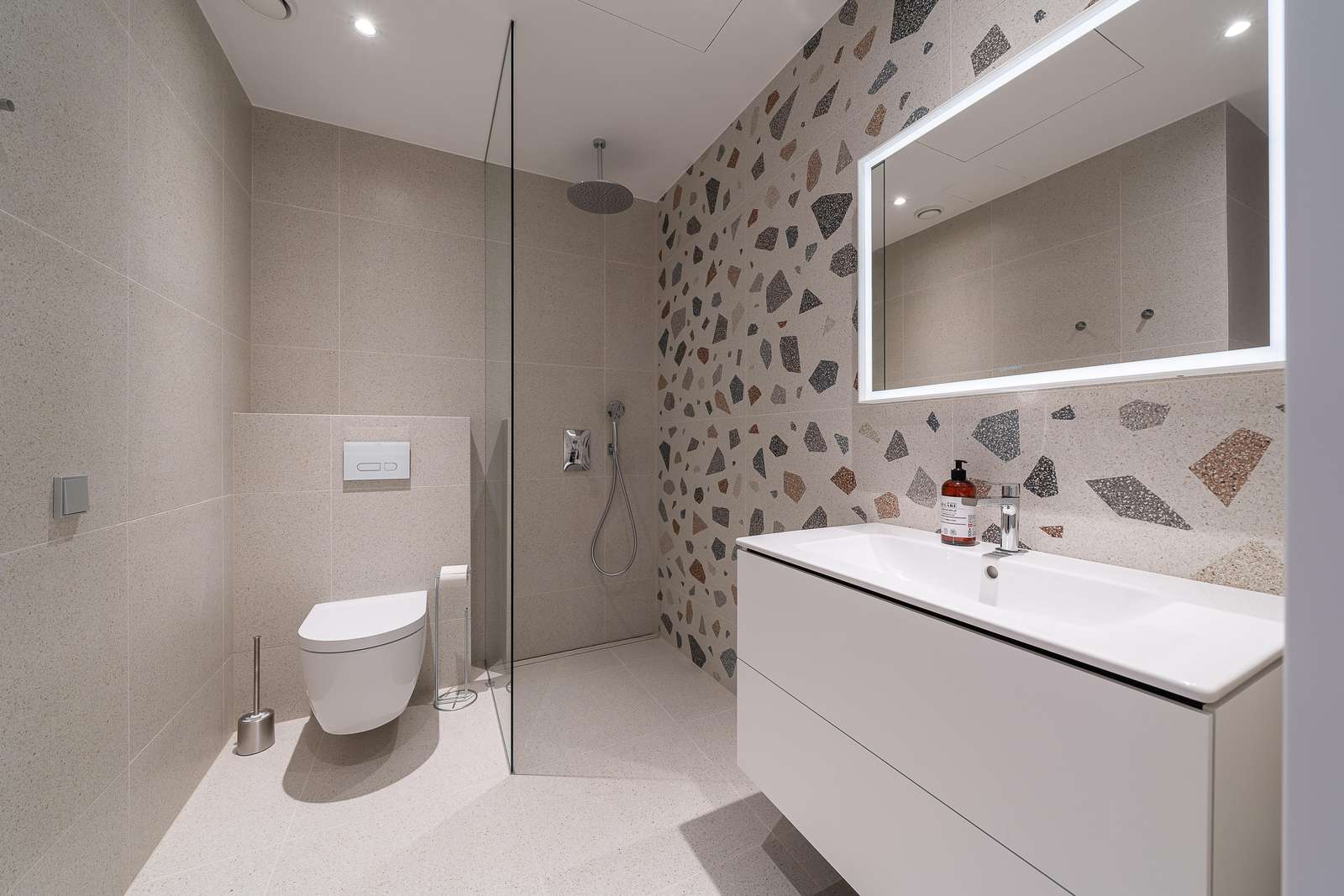 ⬩ Living area: Bright lounge with a comfy sofa, coffee table, and soft lighting. Central heating keeps you comfortable year-round.